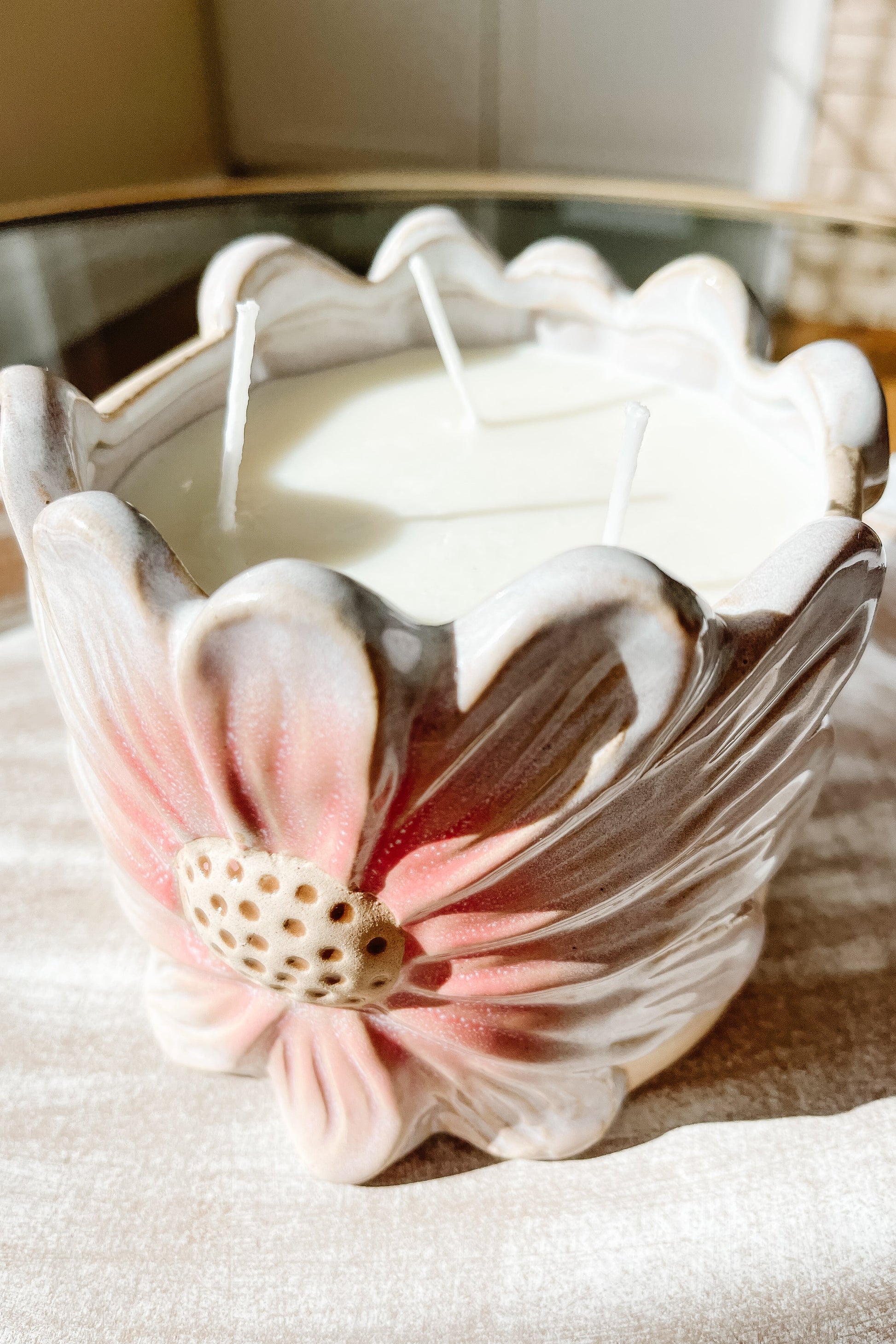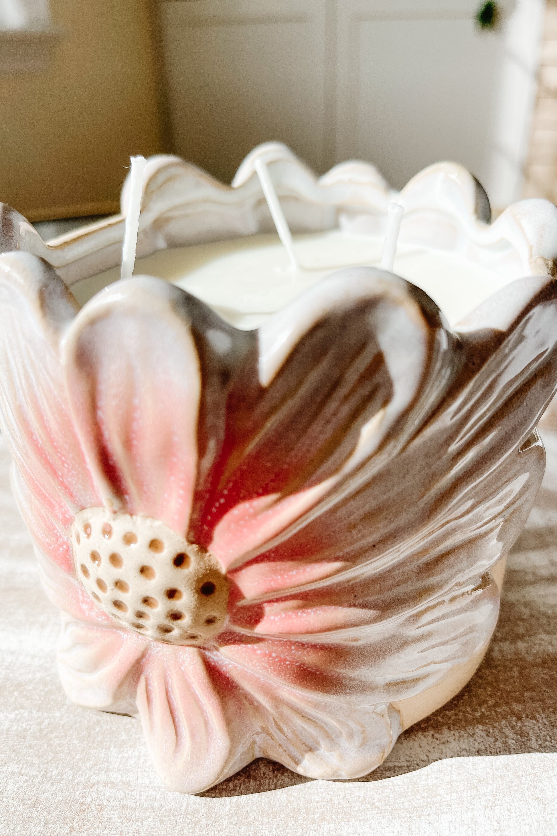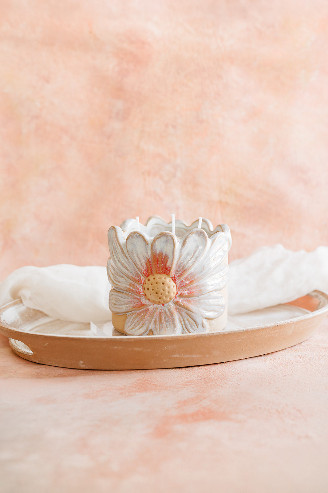 Bring the essence of a blooming garden into your home with the Daisy Flower 3-Wick Candle.